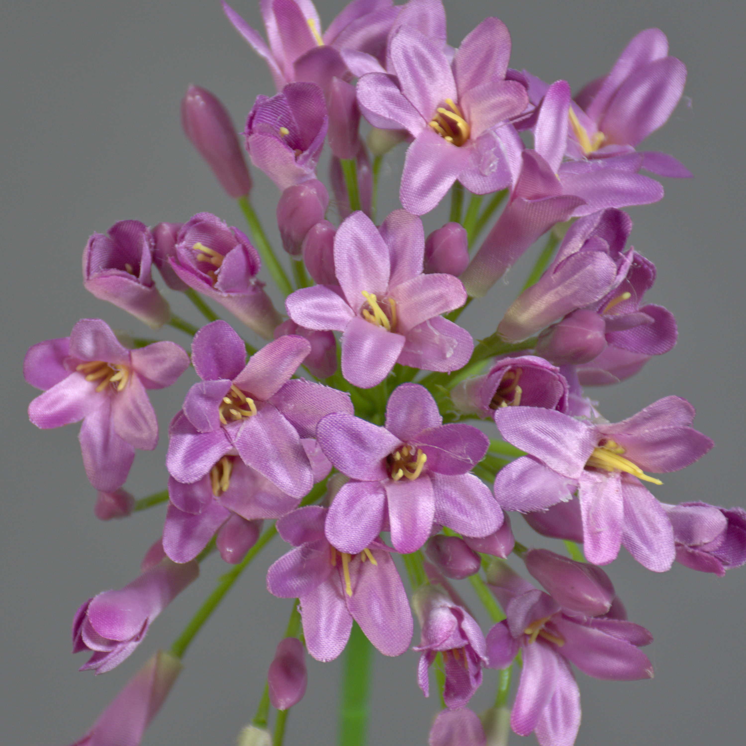 - Constituée de fleurs sphériques avec des fleurs fermées et quelques fleurs ouvertes de couleur violette