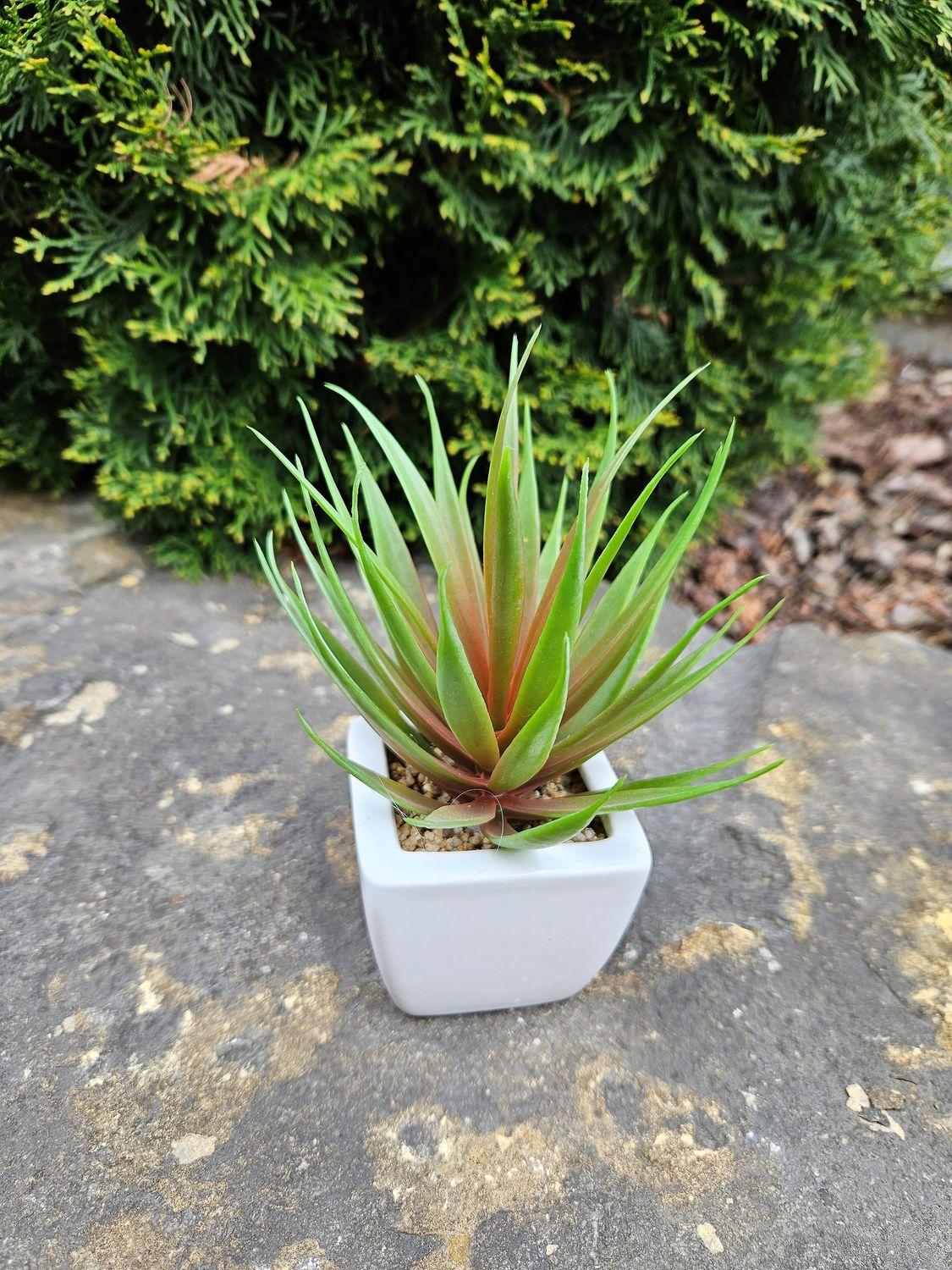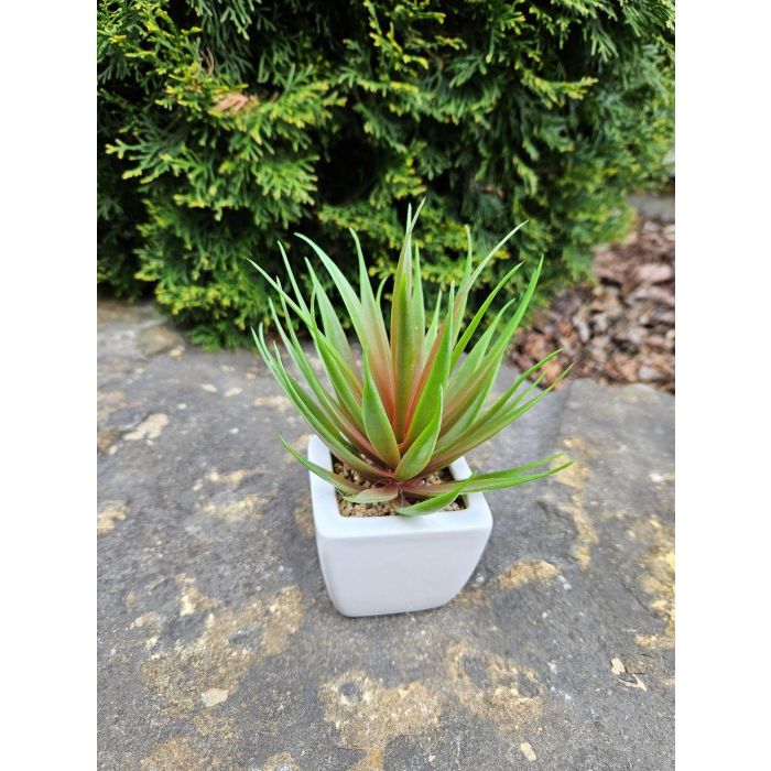 Agave decipiens artificiel KATNISS, pot en céramique, vert-rouge, 19cm