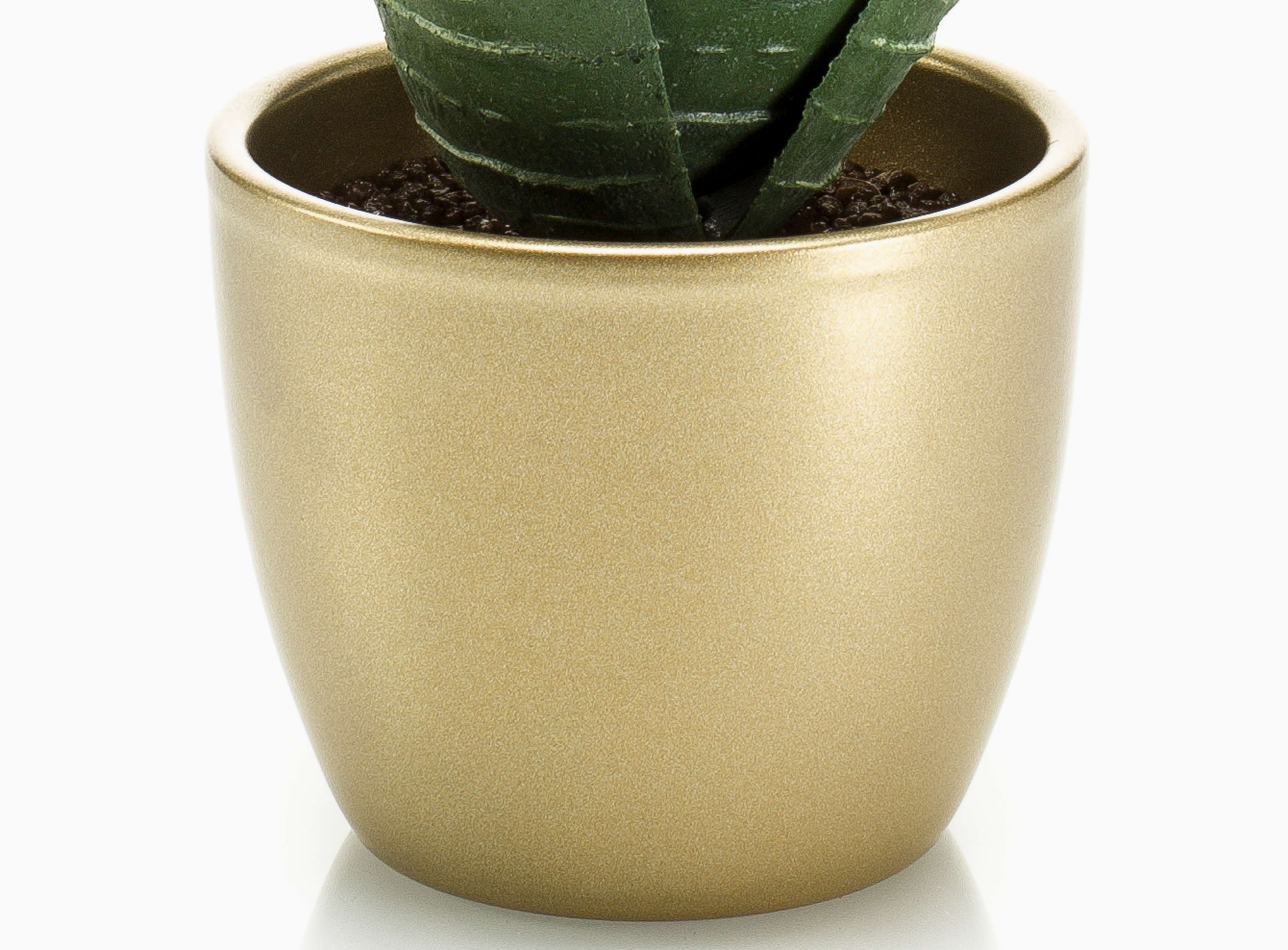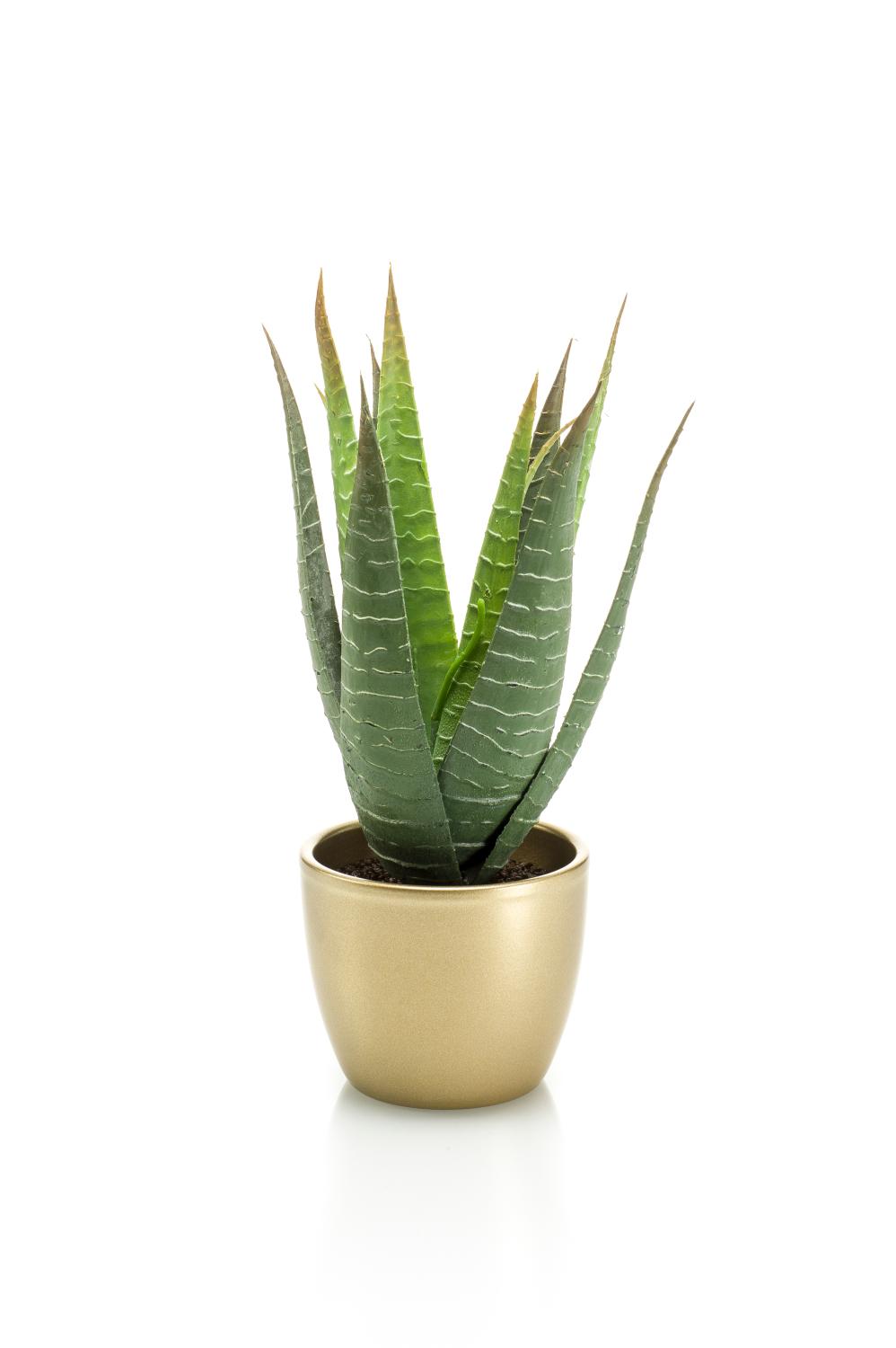 Aloe variegata synthétique MARTINEZ, pot en céramique doré, vert, 25cm, Ø17cm