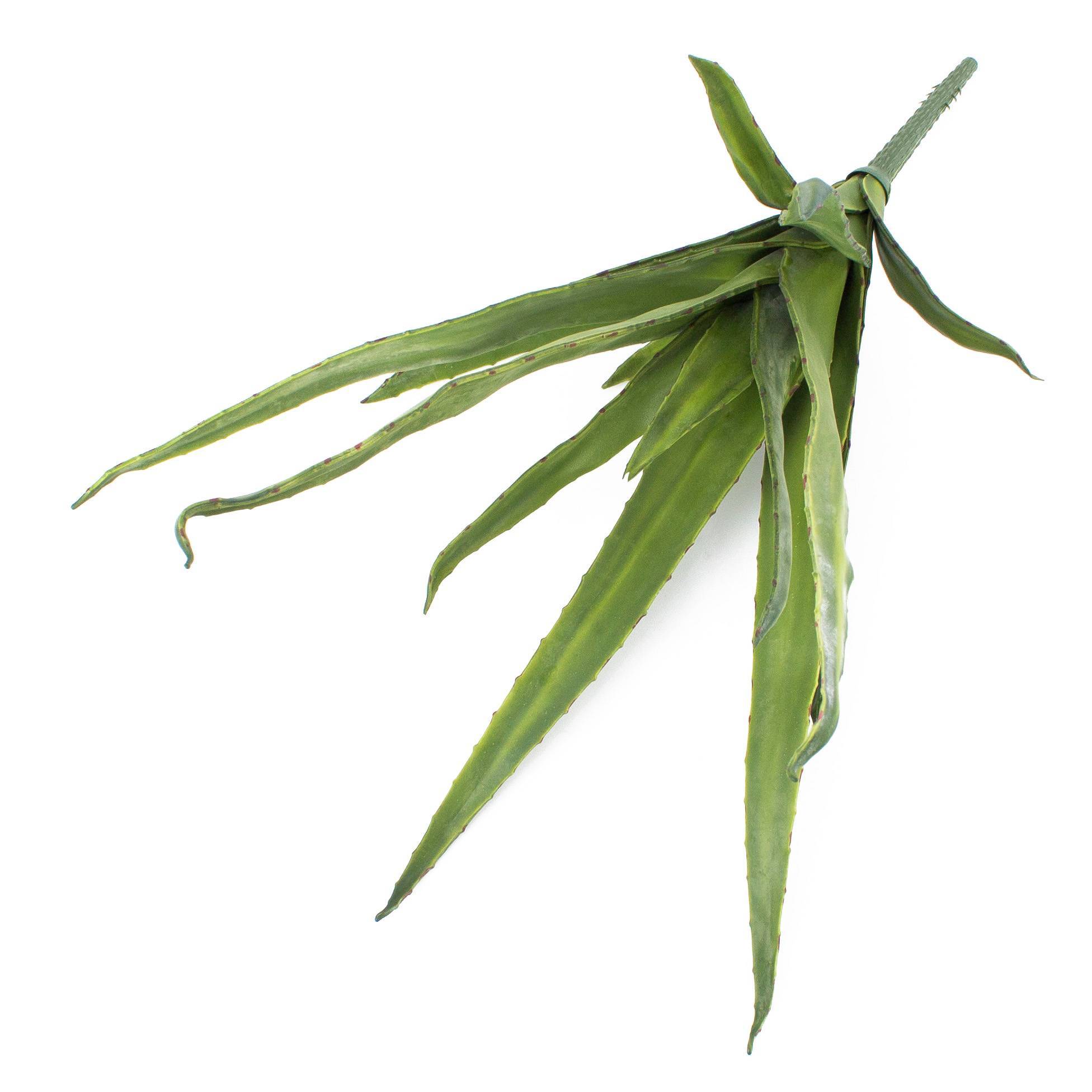 Cette tige d'aloès artificiel mesure au total environ 50 cm de haut et est pourvu de nombreuses feuilles charnues sur piquet. Cette plante décorative crée par son jeu de couleurs un aspect naturel et est adaptée grâce à sa matière pour une utilisation en extérieur.