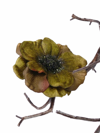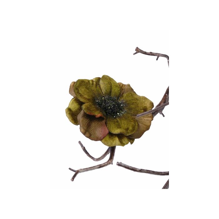 Anémone artificielle GORO sur clip, vert olive, Ø11cm
