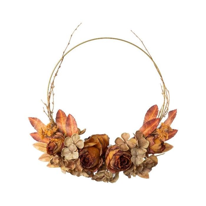 Anneau floral décoratif d'automne WIMRA, hortensia, rose, brun-orange, Ø50cm