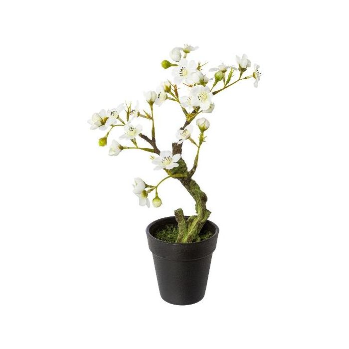Arbre artificiel Bonsaï amandier OYOS en pot décoratif, avec des fleurs, blanc, 26cm