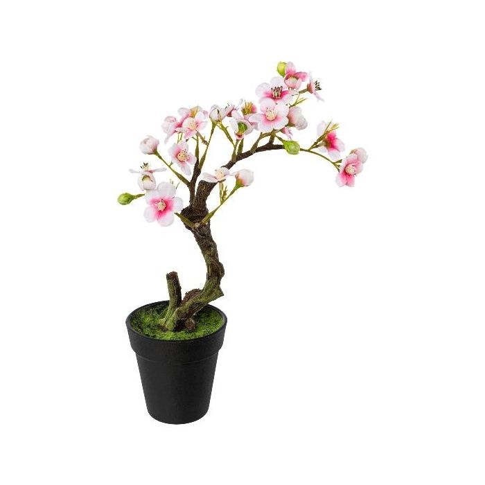 Arbre artificiel Bonzaï amandier OYOS en pot décoratif, avec des fleurs, rose, 26cm
