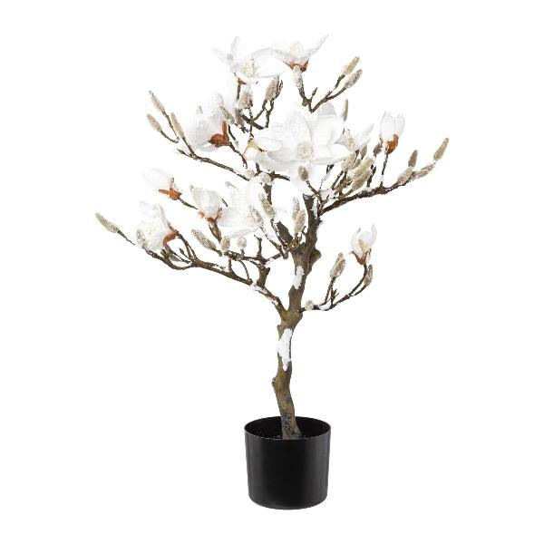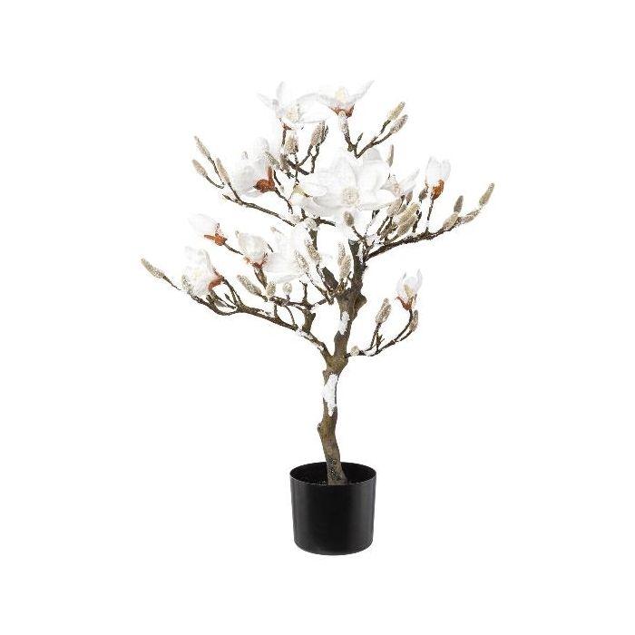 Arbre artificiel Magnolia DOLS, tronc artificiel, avec des fleurs, enneigé, 85cm