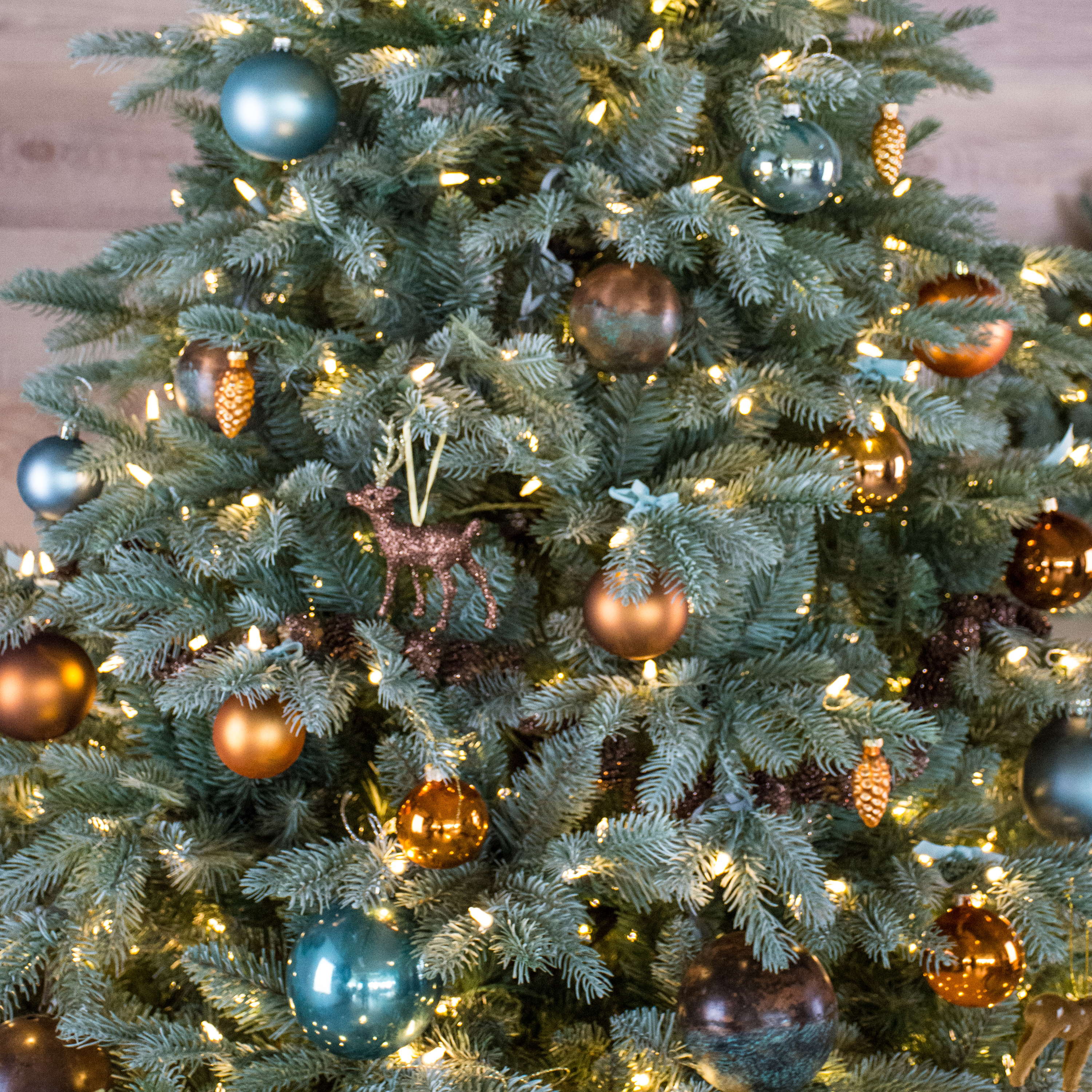 - Pourvu de branches de conifères souples en bleu en matière PE/PVC