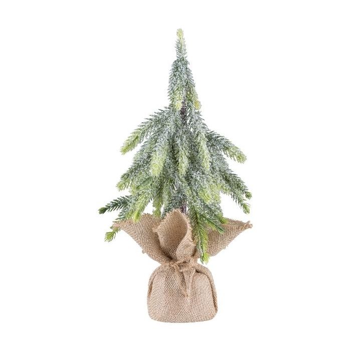 Arbre décoratif Épicéa URUM dans un sac en jute, givré, 35cm