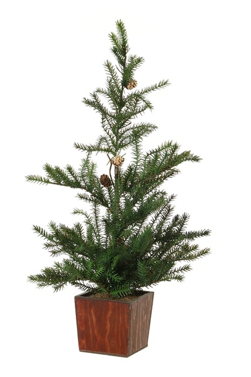 Arbre décoratif Sapin CEDARIO avec pommes de pin, dans un pot en bois, 60cm