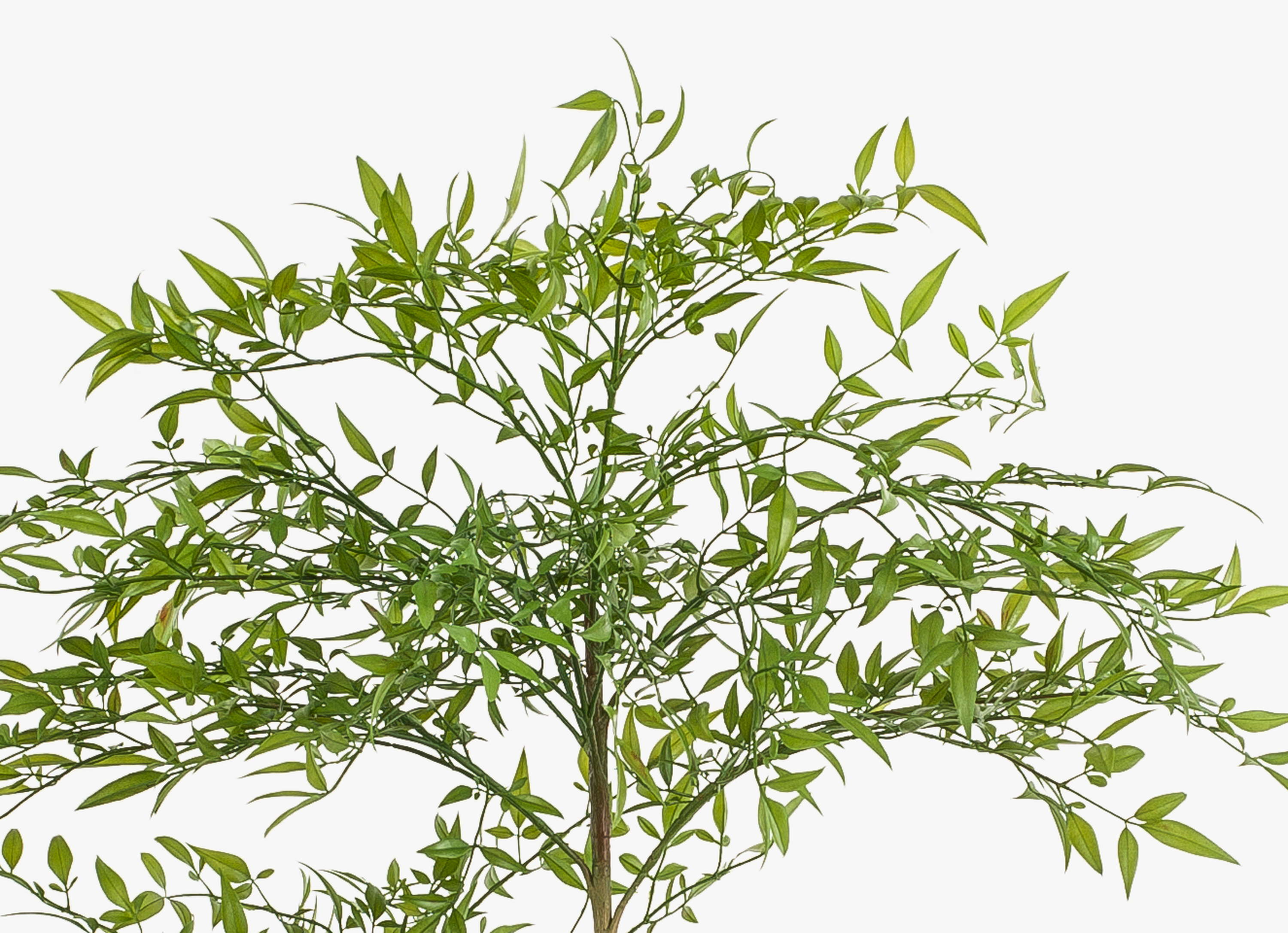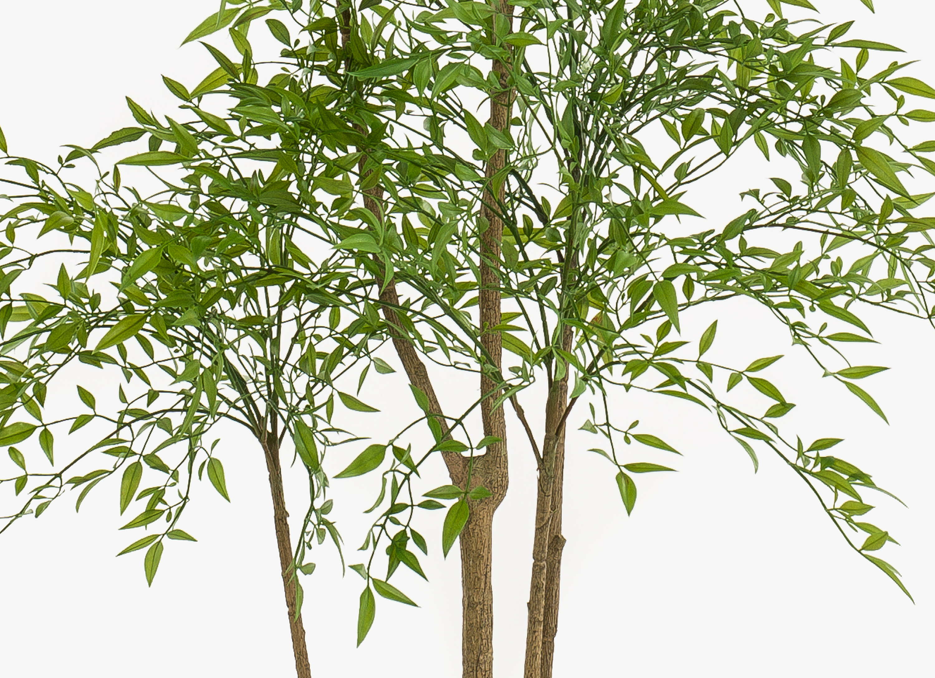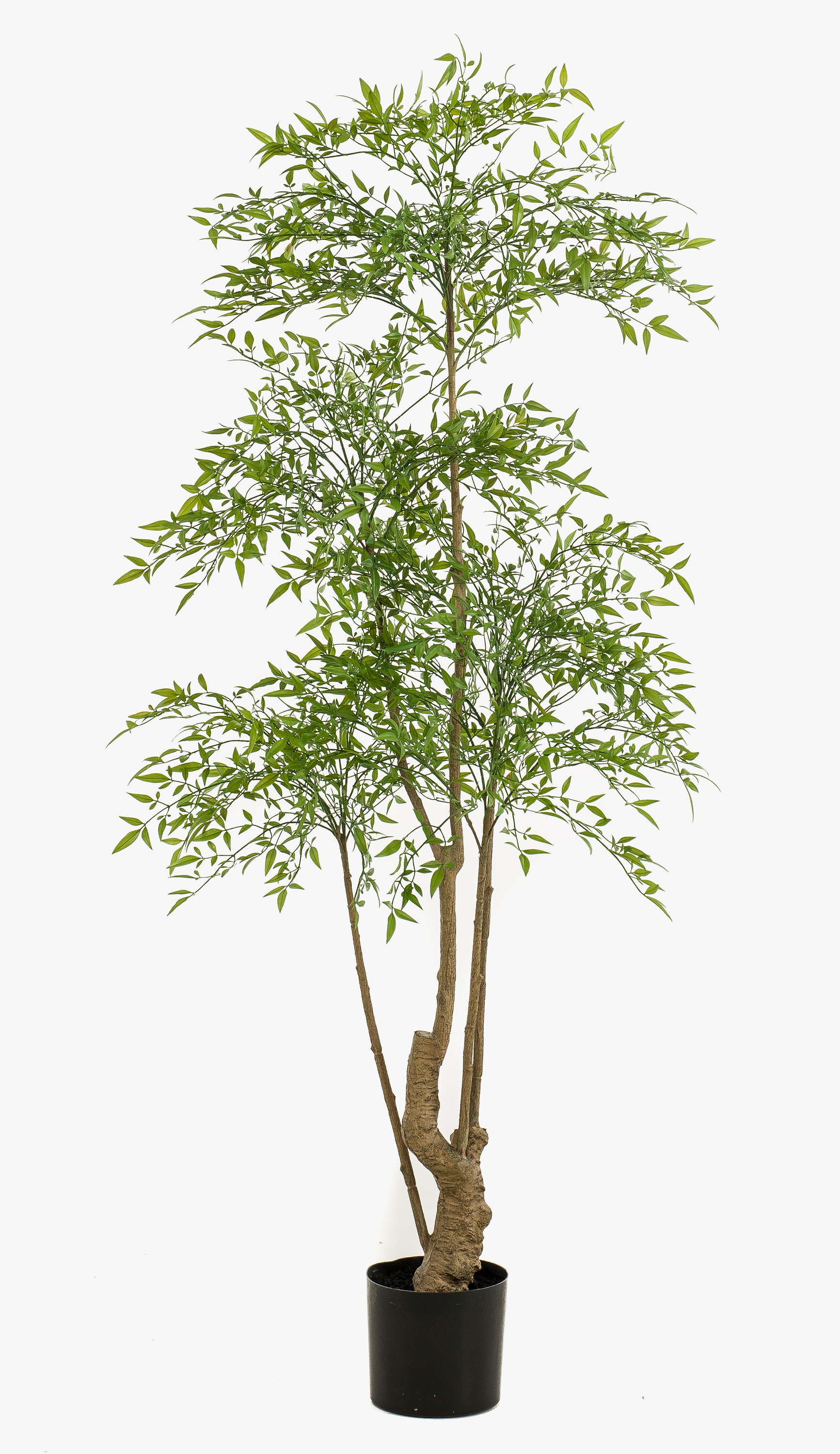 - La base du tronc d'aspect naturel se ramifie en plusieurs branches plus fines qui sont densément couvertes de feuilles