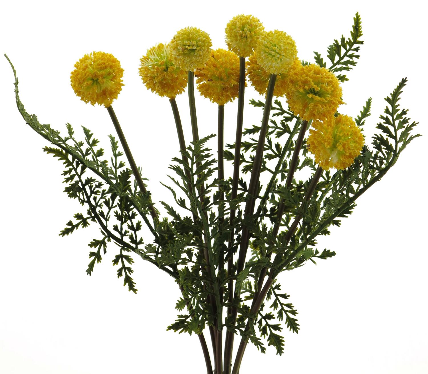 Arrangement artificiel MANXIA craspédia et fougère femelle, piquet, jaune, 40cm