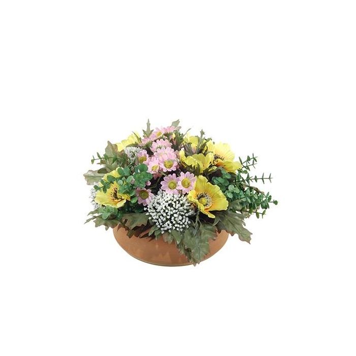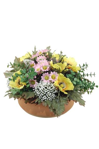 Arrangement d'anémone et d'astilbe artificiel IGNATIO sur socle, jaune-rose, 17cm, Ø28cm
