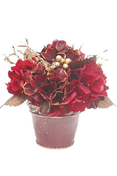 Arrangement d'hortensia artificiel, baie SUKI, pot décoratif, rouge-or, 25cm, Ø25cm