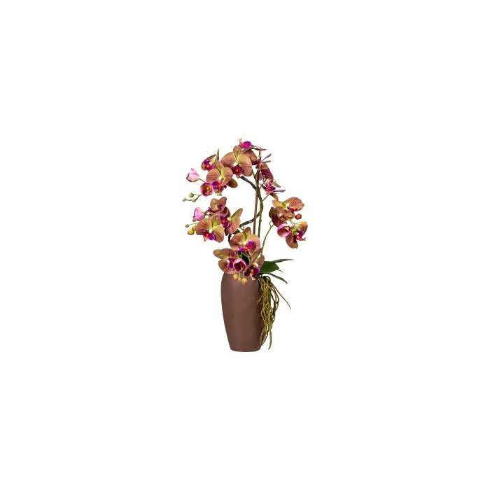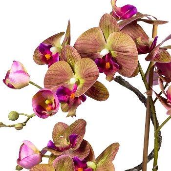 Arrangement d'orchidée et de saule tire-bouchon artificiel RASTIA, vase en céramique, racines, rose fuchsia-vert, 70cm