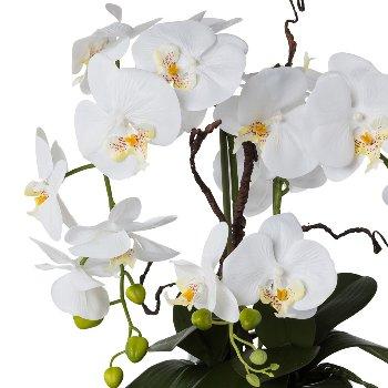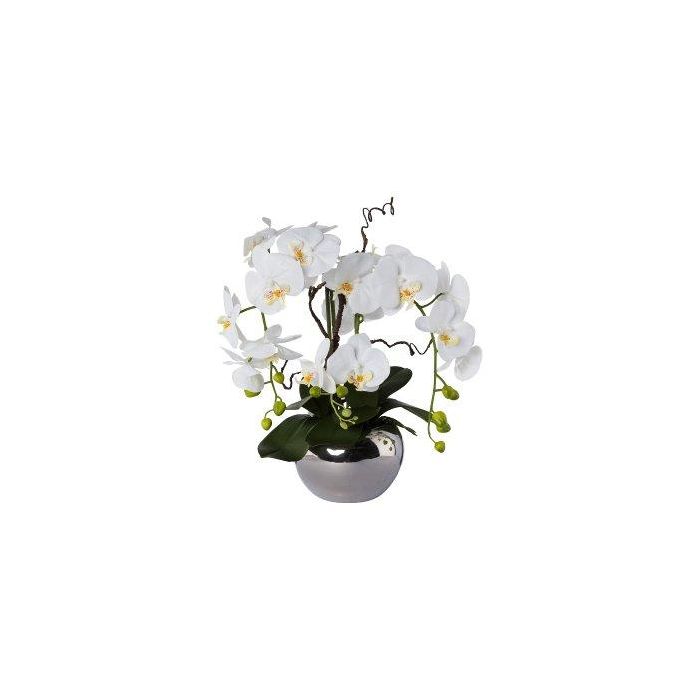 Arrangement d'orchidée et de saule tire-bouchon décoratif LULUDI, pot en céramique argenté, racines, blanc, 55cm