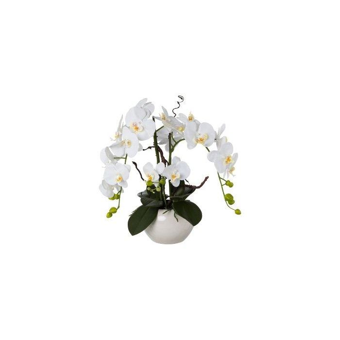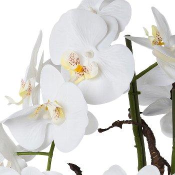 Arrangement d'orchidée et de saule tire-bouchon décoratif LULUDI, pot en céramique blanc, racines, blanc, 55cm