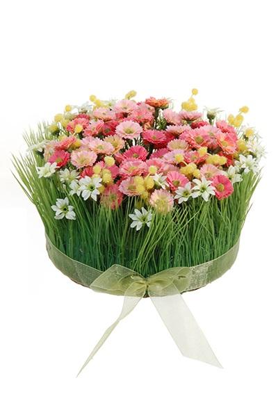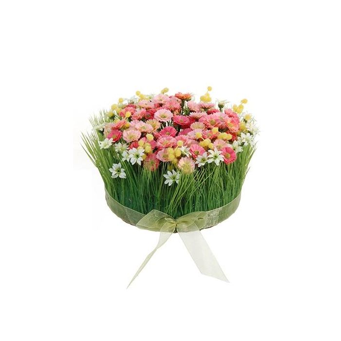 Composition florale en plastique de marguerites et d'herbe HAULANI