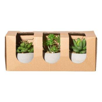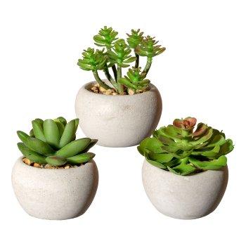 Arrangement de plantes succulentes artificielles PLOKSA dans un pot en ciment, 3 pièces, vert, 6,5-8cm