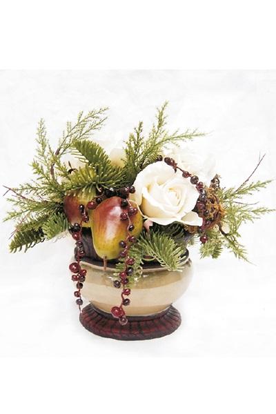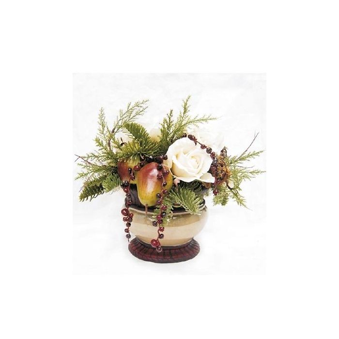 Arrangement de rose, d'hortensia et de poires SUKKI, pot décoratif, blanc-rouge-vert, 26cm, Ø30cm