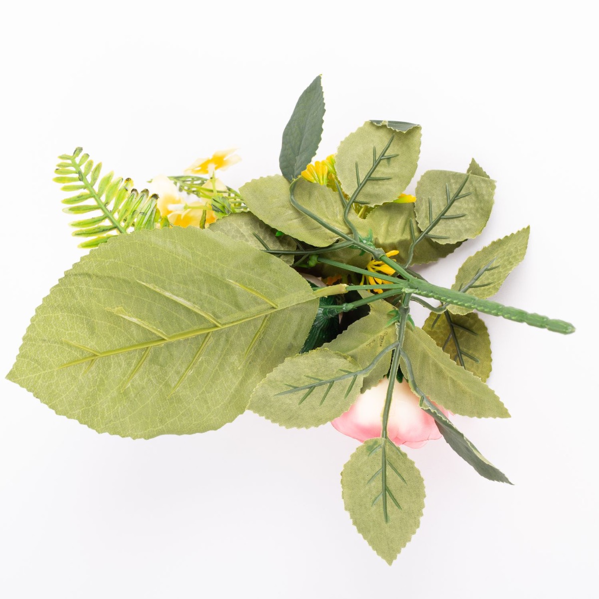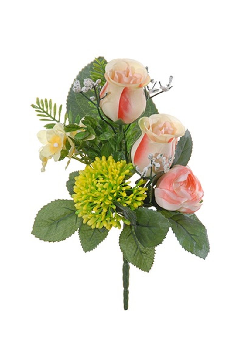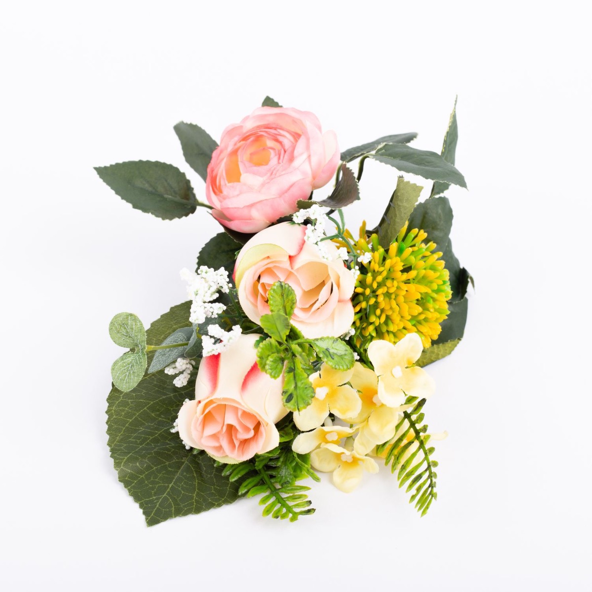 Arrangement de rose, de renoncule et d'allium artificiel HOKUNA, piquet, rose-jaune, 27cm, Ø20cm