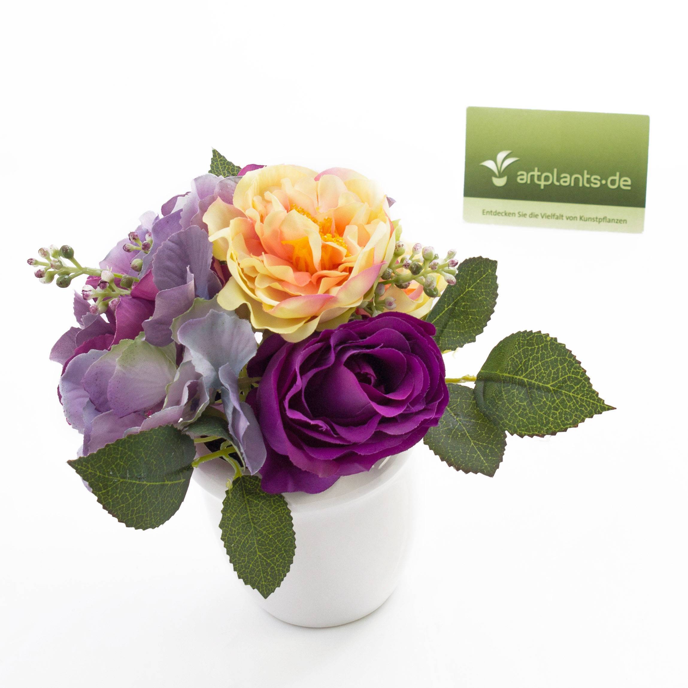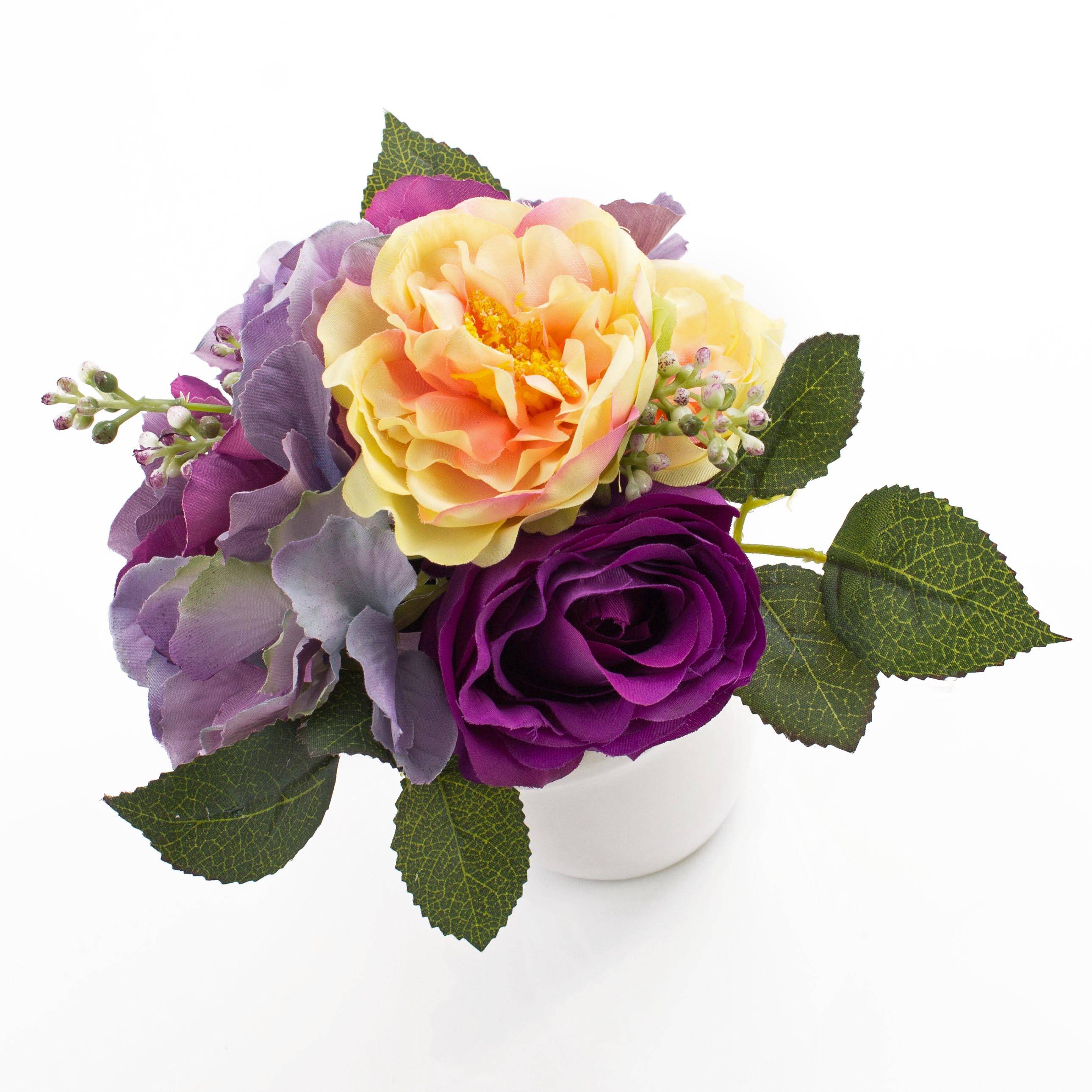 Arrangement de roses et hortensias artificiel FELINE, lilas, 17cm, Ø18cm