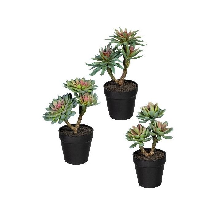 Arrangement de succulentes artificielles DRULKE en pot décoratif, 3 pièces, vert-rose, 21-23cm