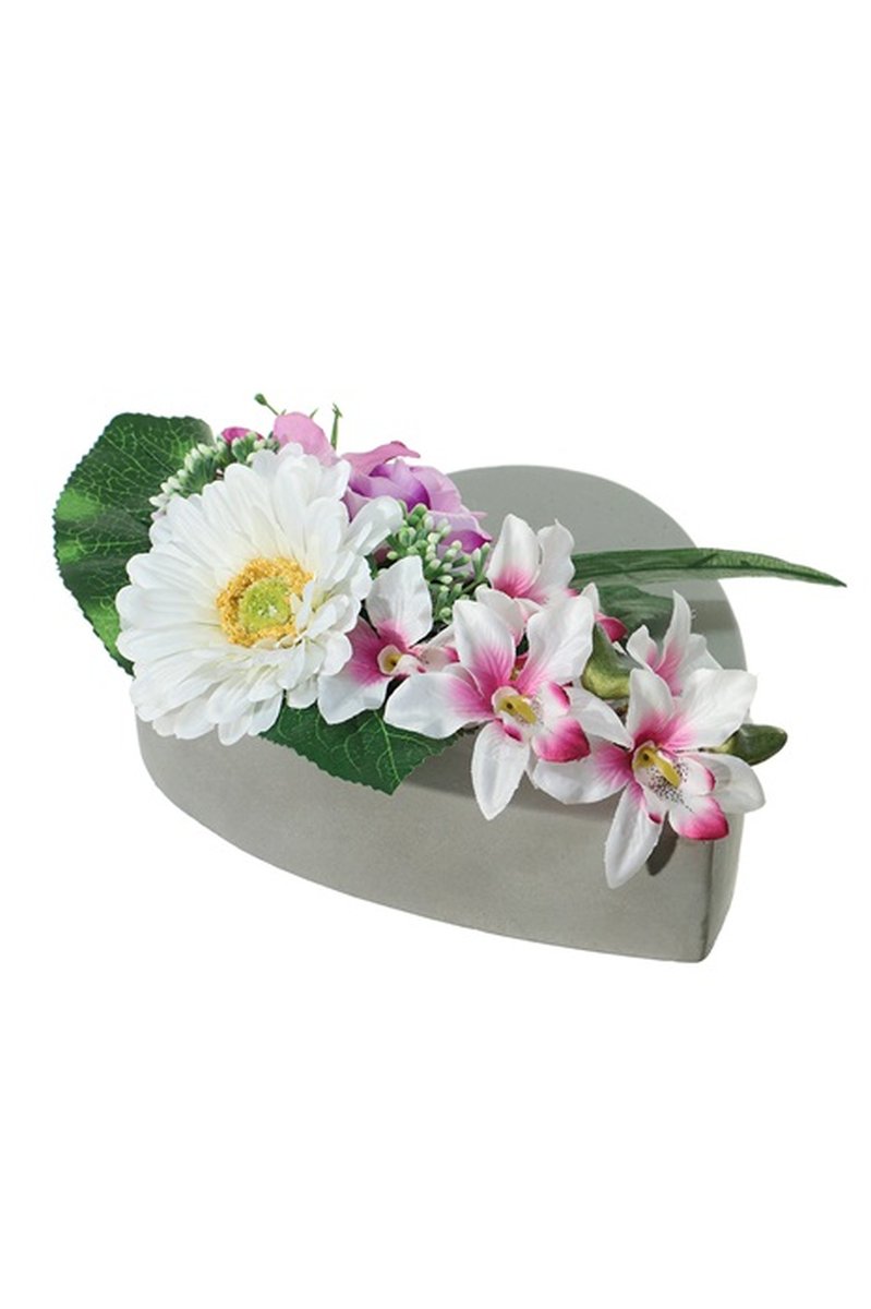 - Livrée dans une coupe en forme de cœur (env. 24 x 20 x 5 cm) en béton avec des protections de meuble à poser directement à l'endroit souhaité