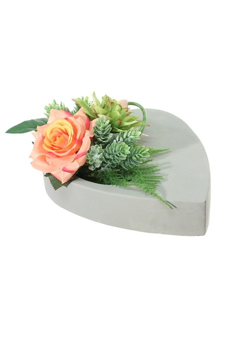 - Livrée dans une coupe en forme de cœur (env. 24 x 20 x 5 cm) en béton avec des protections de meuble à poser directement à l'endroit souhaité
