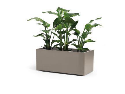 Bac à fleurs rectangulaire NASTASJA en plastique recyclé, avec réserve d'eau, roulettes, taupe, 99,5x39,5x38cm, 102L