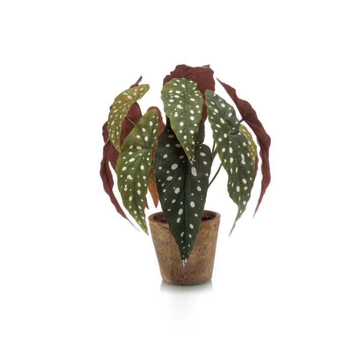 Bégonia bambou artificiel ELISEIA, pot en terre cuite, vert-blanc, 30cm