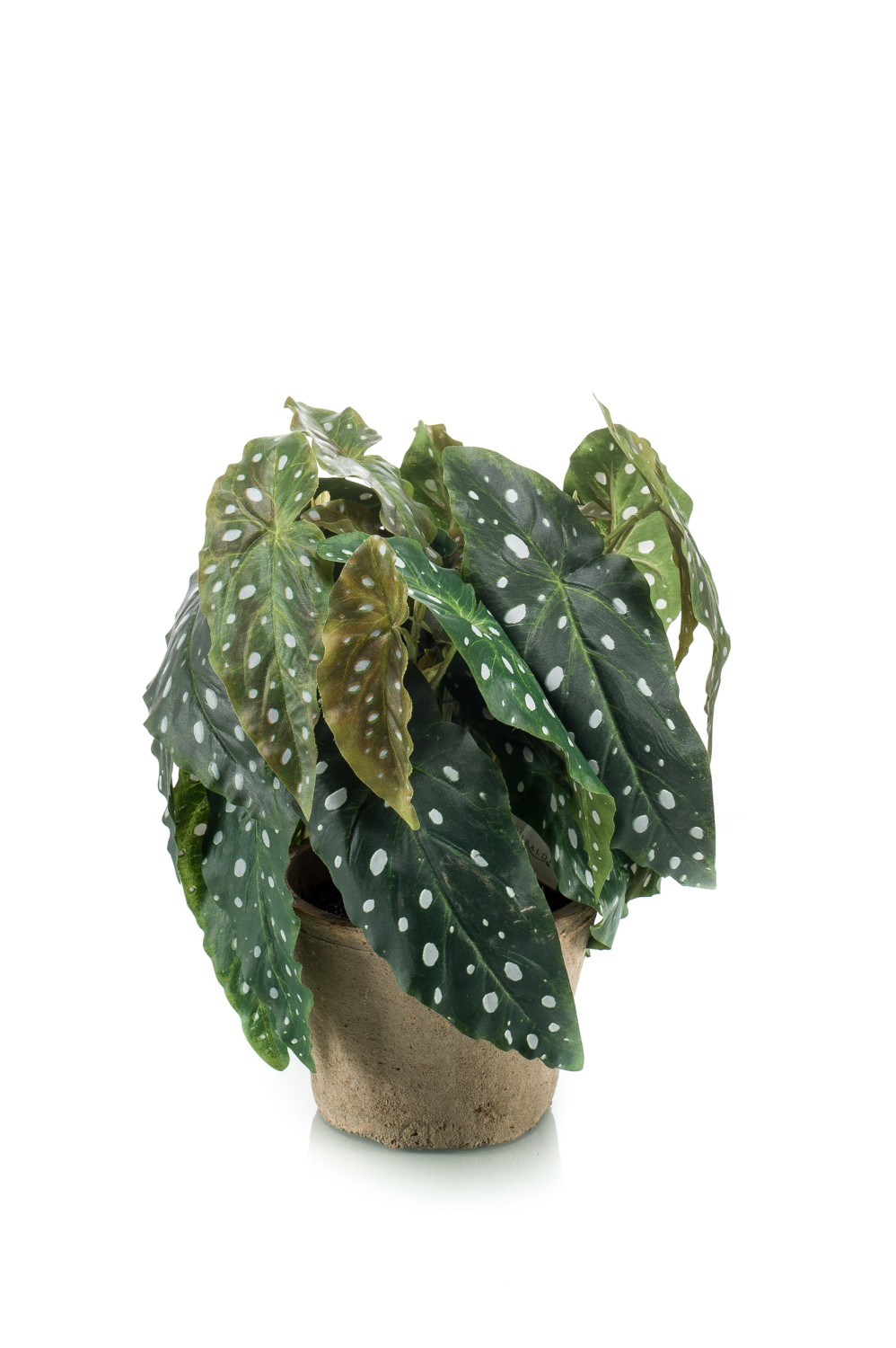 Bégonia maculata artificiel JOELLE, pot en terre cuite, touffu, vert-blanc, 30cm