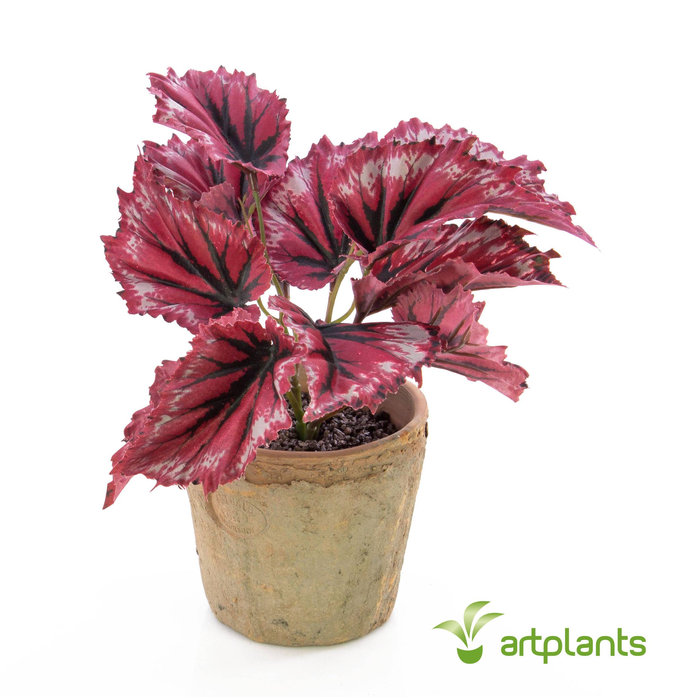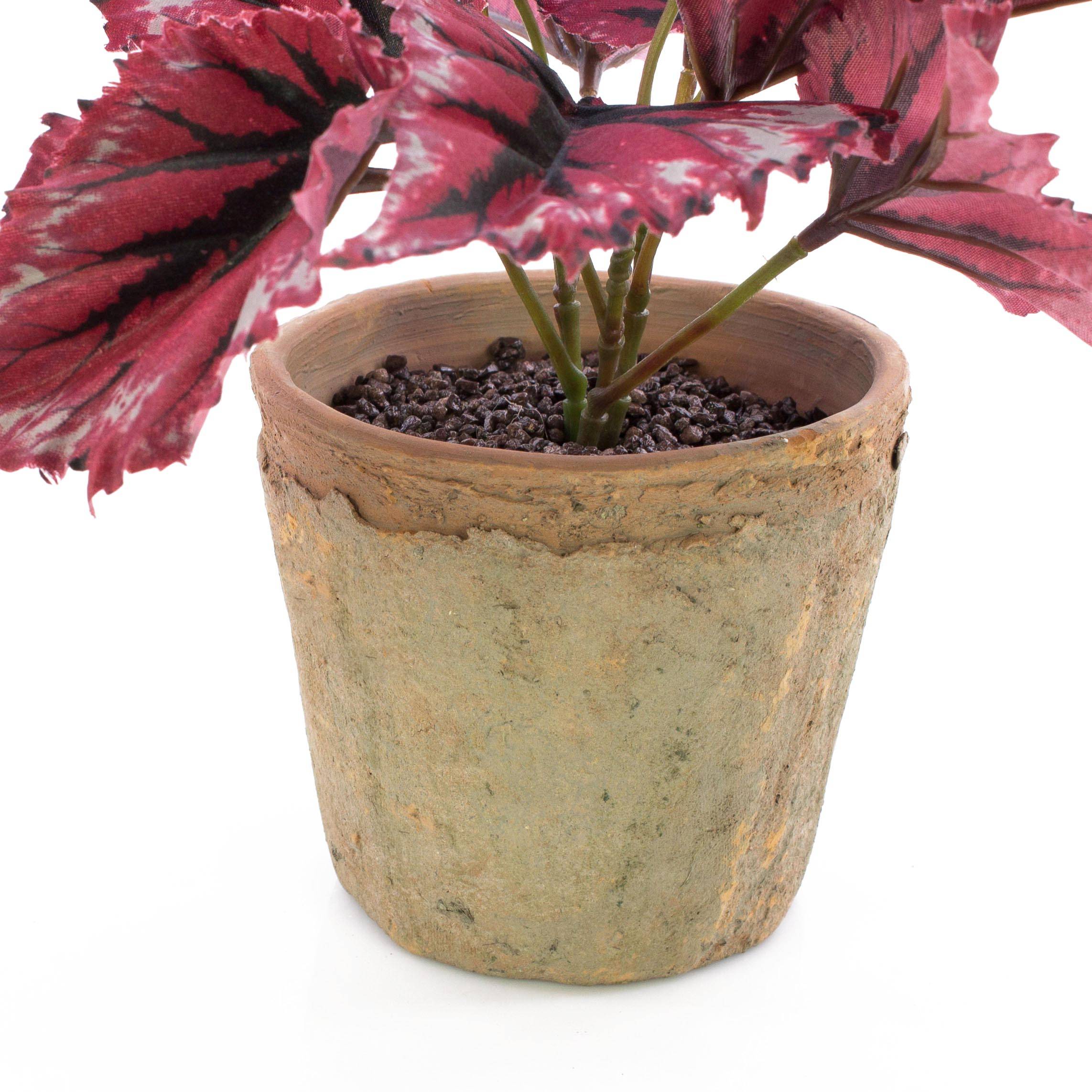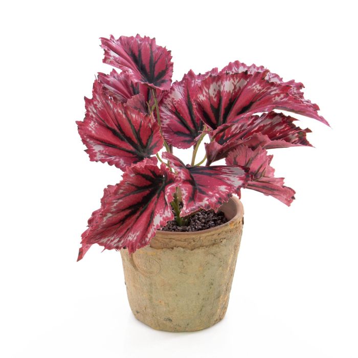 Bégonia rex artificiel BENICE, en pot en terre cuite, rouge, 20cm