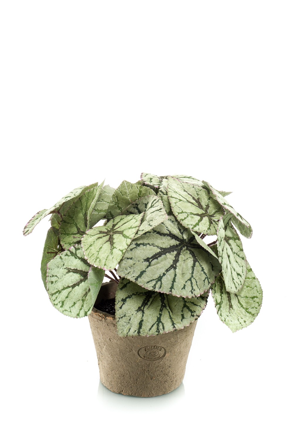 Bégonia rex artificiel MEIRA en pot en terre cuite, touffu, vert-gris, 25cm