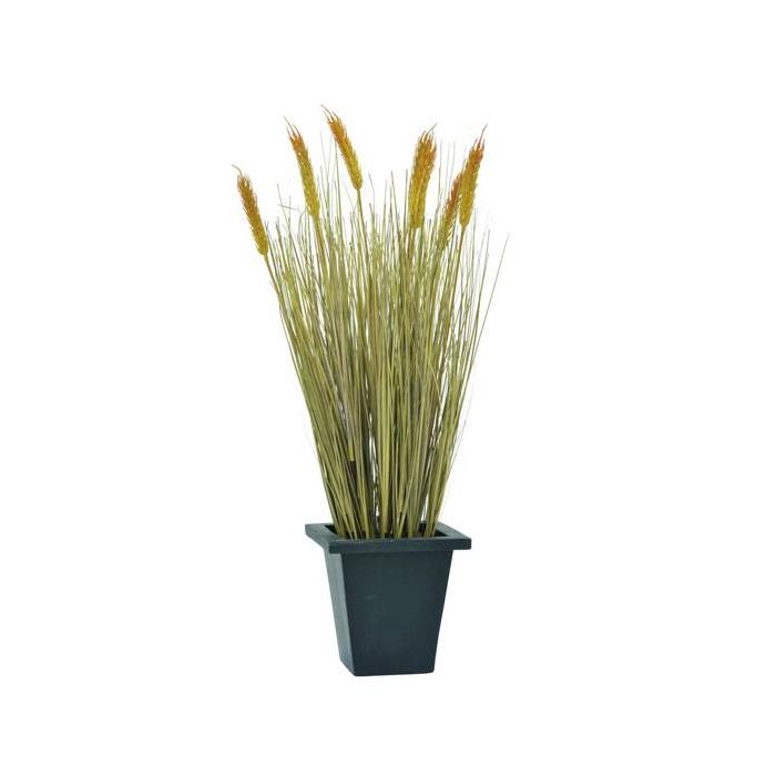 Joli blé décoratif dans son pot carré. Cette plante artificielle est composée d'environ 30 touffes d'herbe et mesure au total environ 60 cm.