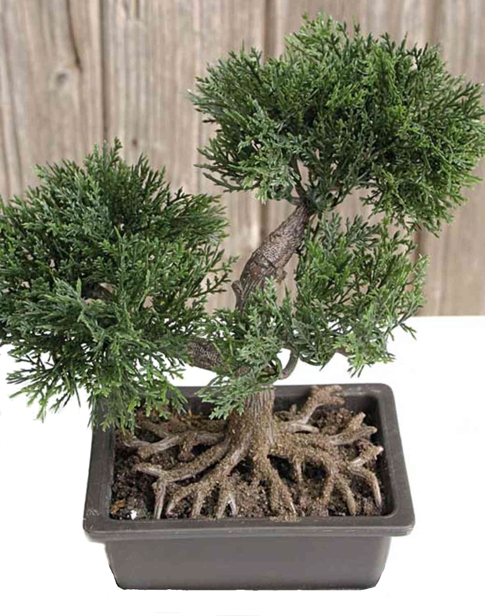 Bonsaï artificiel cèdre ALVARI avec racines, coupe décorative, 20cm