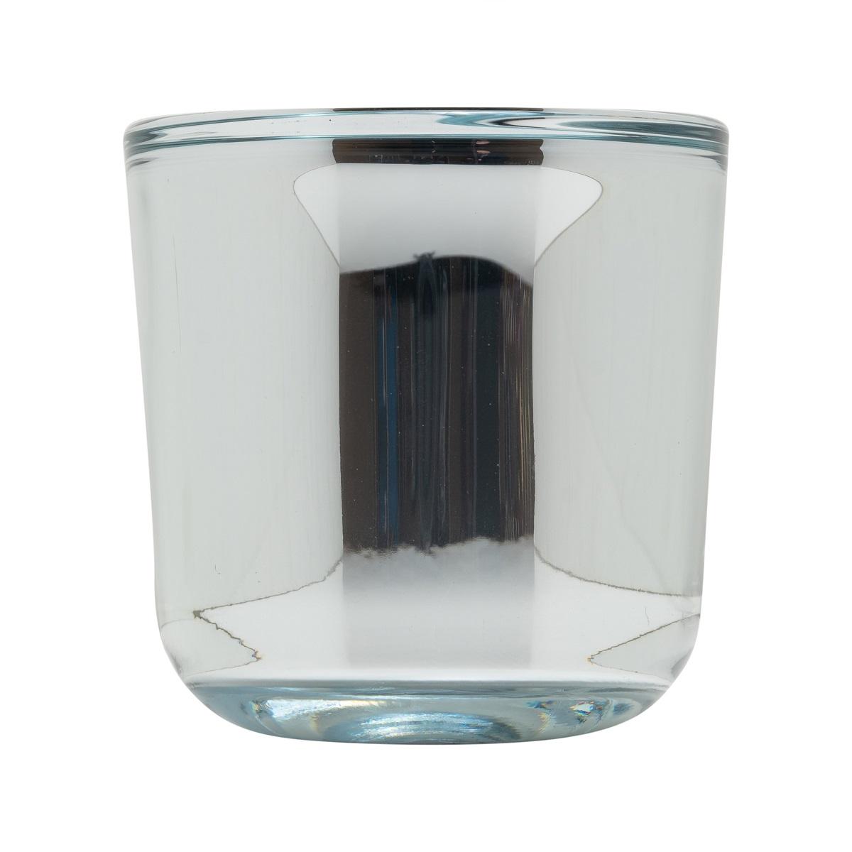Bougeoir en verre NICK, argent brillant, 7,5cm, Ø7,5cm