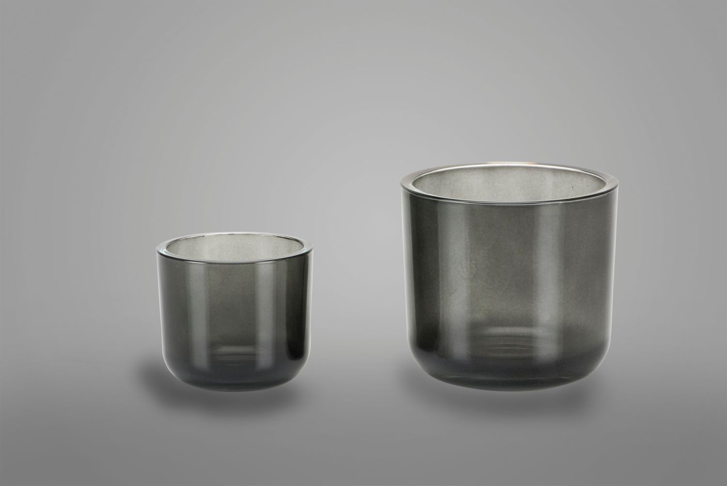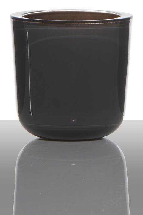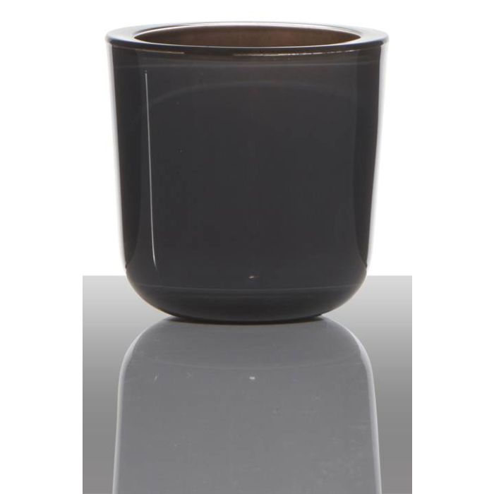 Bougeoir en verre NICK, gris foncé-transparent, 7,5cm, Ø7,5cm