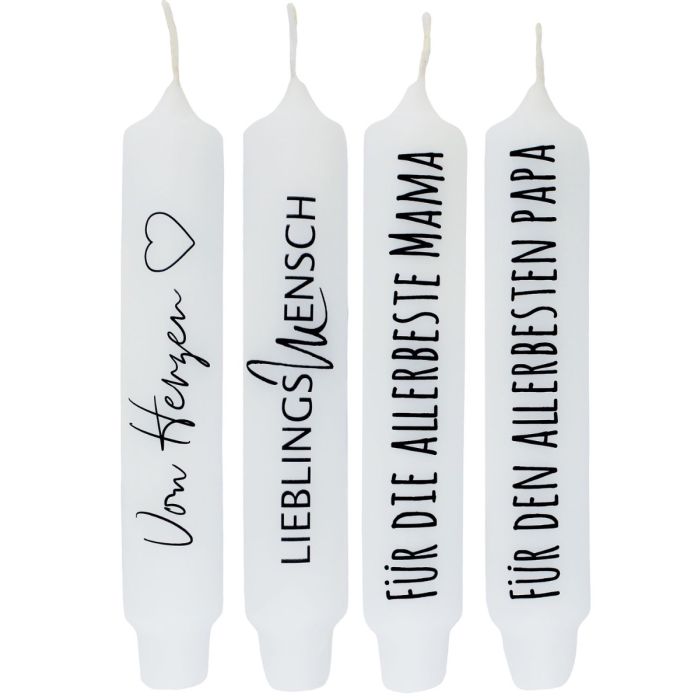 Bougie longue avec dicton KELANI, cordialité en allemand, 4 bougies, 4 dictons, multicolore, 16,5cm, Ø2,8cm, 6h