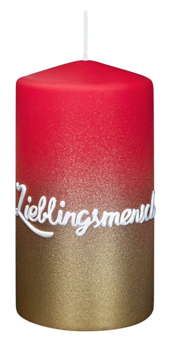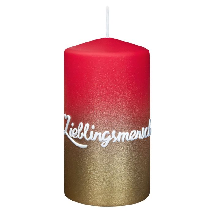 Bougie pilier JARDENA avec écriture, homme préféré en allemand, vieux rouge-or, 13cm, Ø7cm, 52h