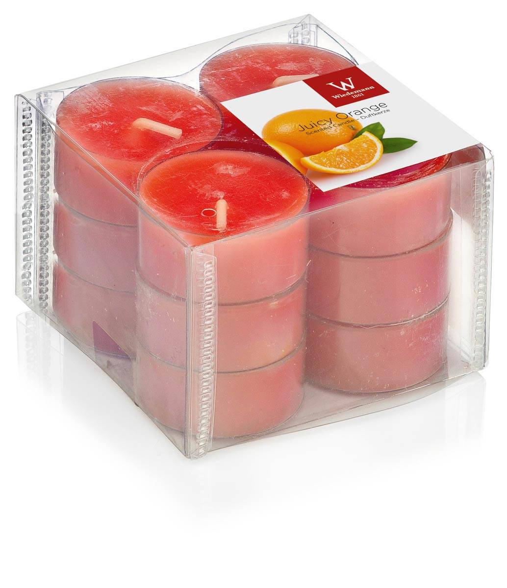 Bougies à réchaud ASTRID avec parfum, Juicy Orange, 12 pièces, orange, 1,6cm, Ø3,7cm, 4h