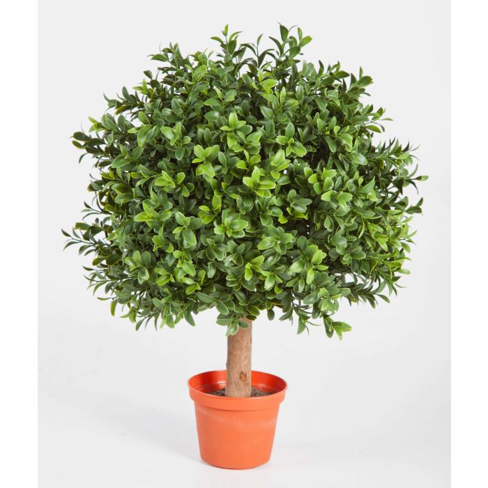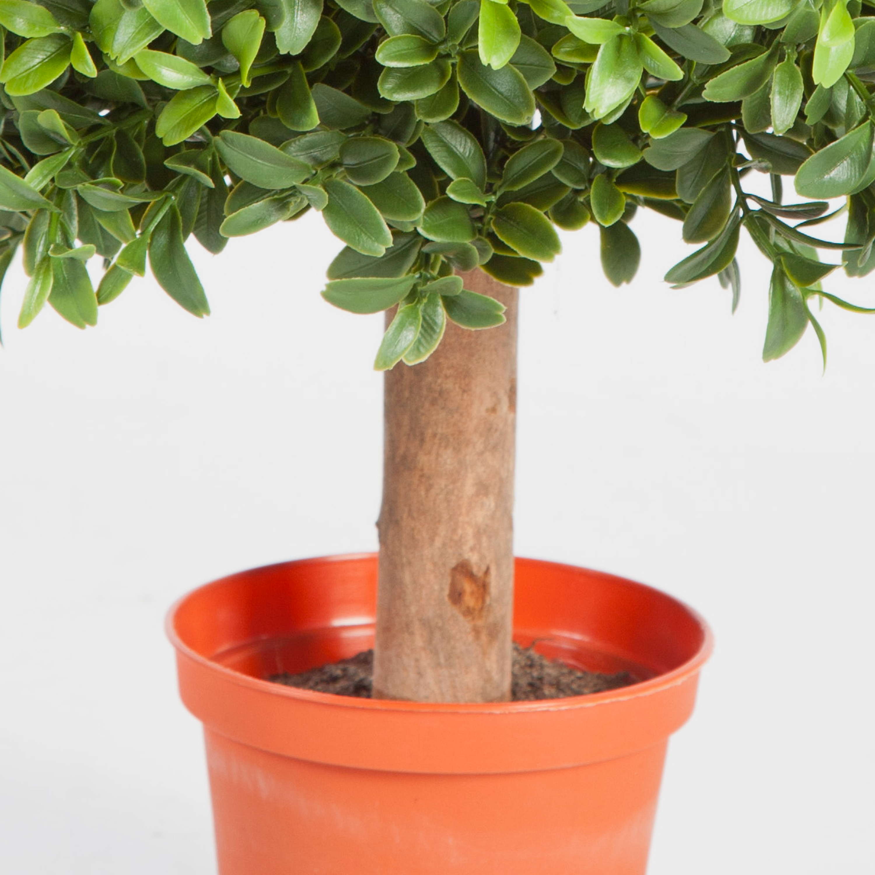 Buis boule en plastique TOM d’aspect naturel sur un tronc en bois naturel