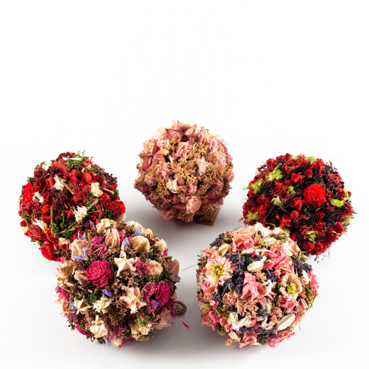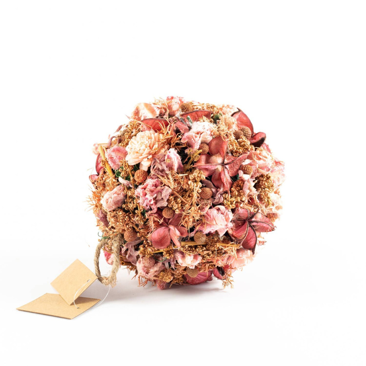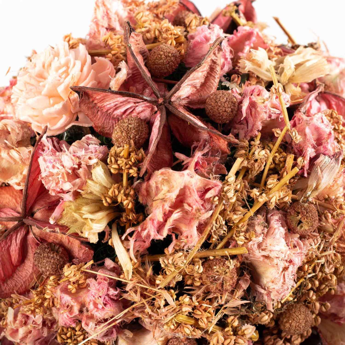- Composée de différentes fleurs séchées de couleur rose-blanc