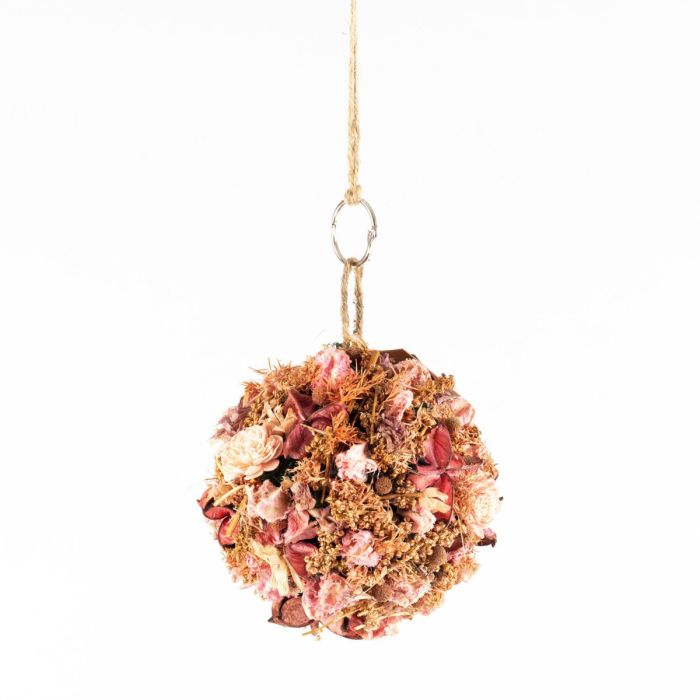 Boule de fleurs séchées à suspendre ZOA avec boucle, rose-blanc, Ø14,5cm