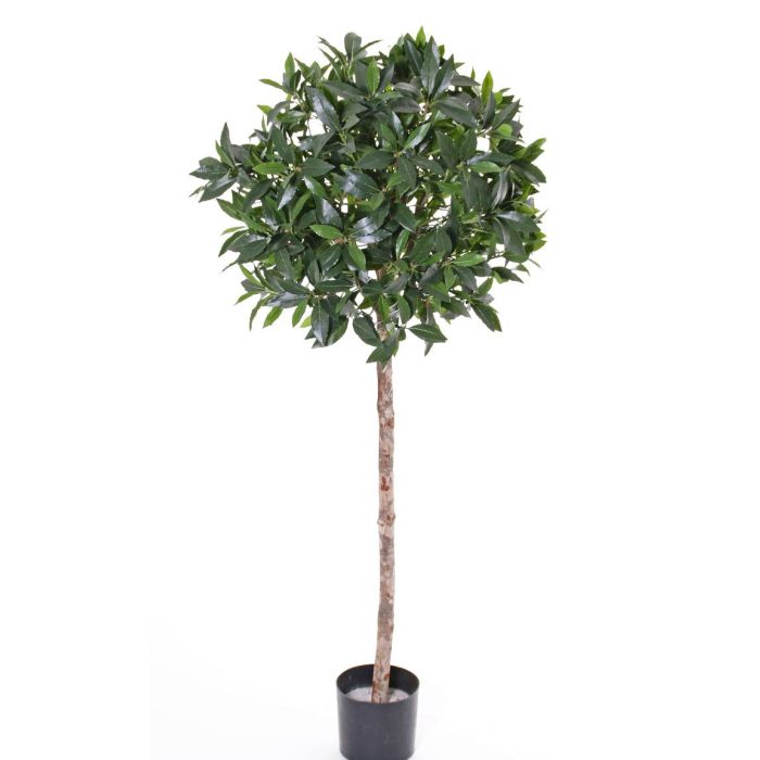 Laurier artificiel de forme sphérique sur un tronc naturel mesurant au total environ 175 cm de haut et 55 cm de diamètre.