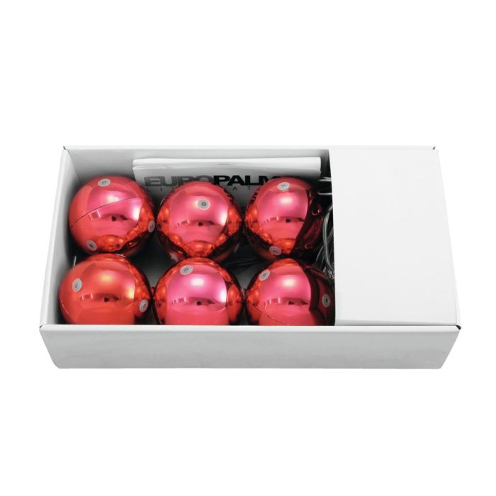 Boule de sapin de Noël ESTRELLA avec LED, 6 pièces, rouge brillant, Ø6cm