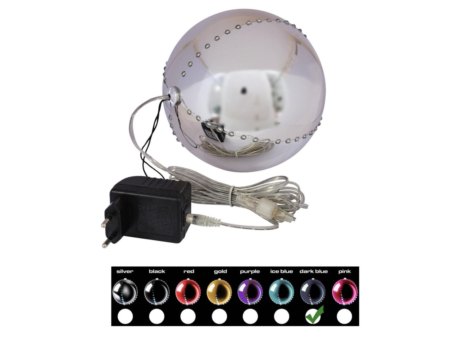 Boule de sapin de Noël LUVELIA avec LEDs, bleu foncé brillant, Ø15cm