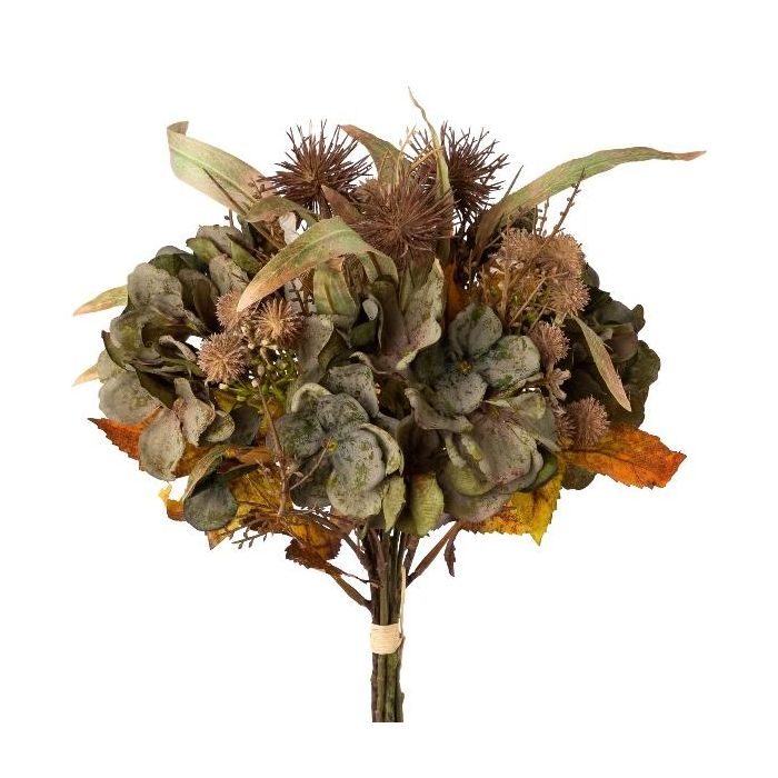 Bouquet artificiel d'hortensia et de chardon boule FISMA, vert-brun, 45cm