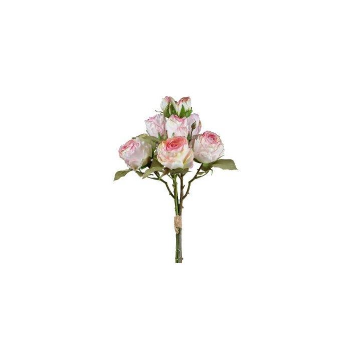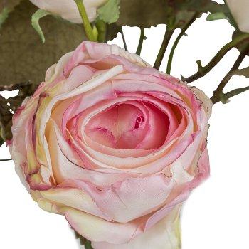 Bouquet artificiel de roses JARZO, rose-blanc, 55cm
