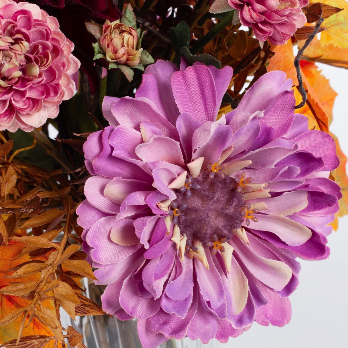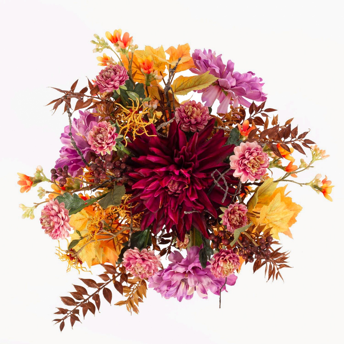 Bouquet d'automne artificiel KALENA, dahlia, zinnia, violet-orange, 40cm, Ø45cm