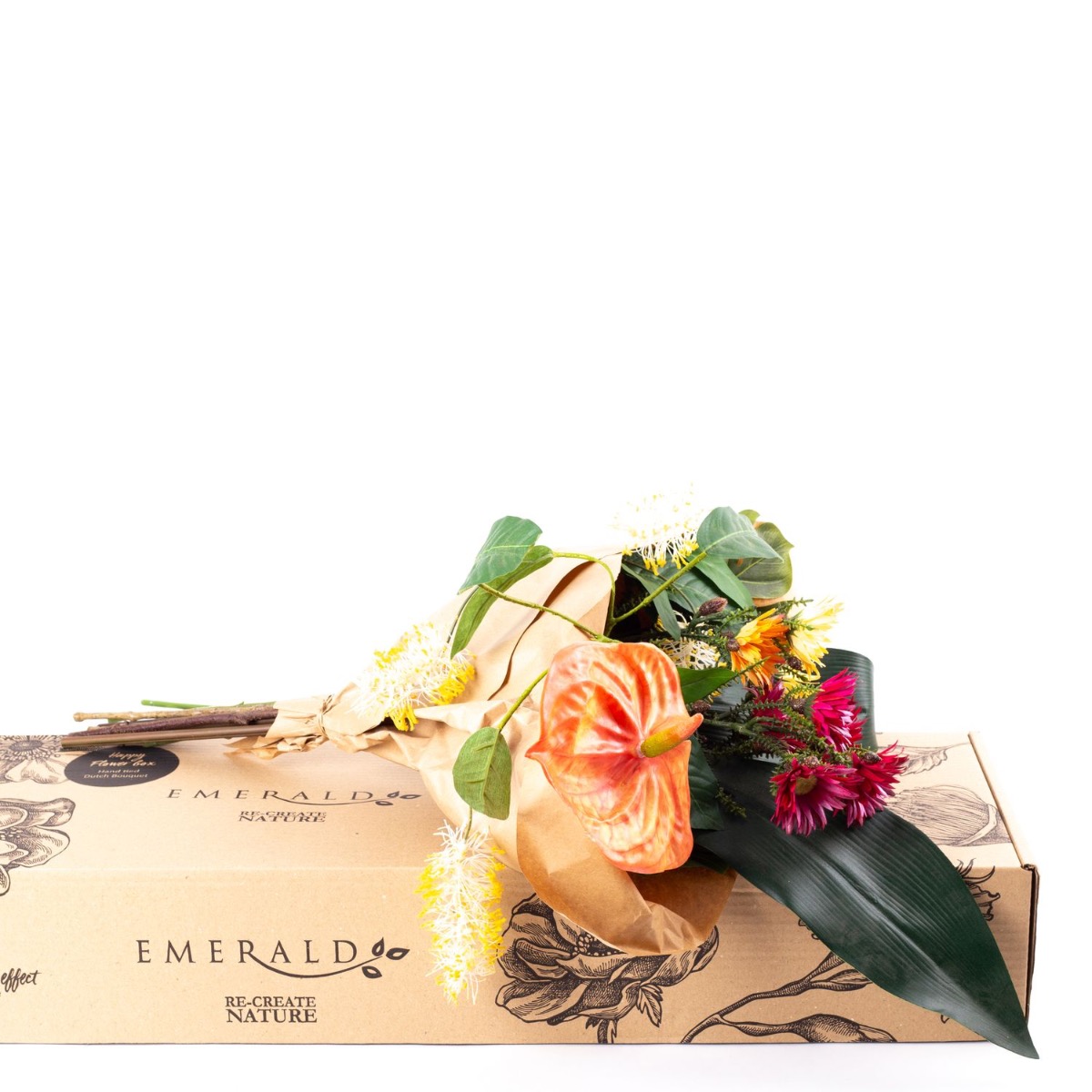 Ce bouquet AVALU incarne la joie de vivre. Les couleurs jaune, orange et rose symbolisent la positivité, la gaieté et la créativité. Les fleurs originales semblent avoir été cueillies directement dans la forêt tropicale australienne pour composer ce bouquet. Des immortelles, des eucalyptus australiens et des fleurs de flamant rose entourent les feuilles tropicales et illuminent votre intérieur. Ce bouquet est tout simplement incontournable !