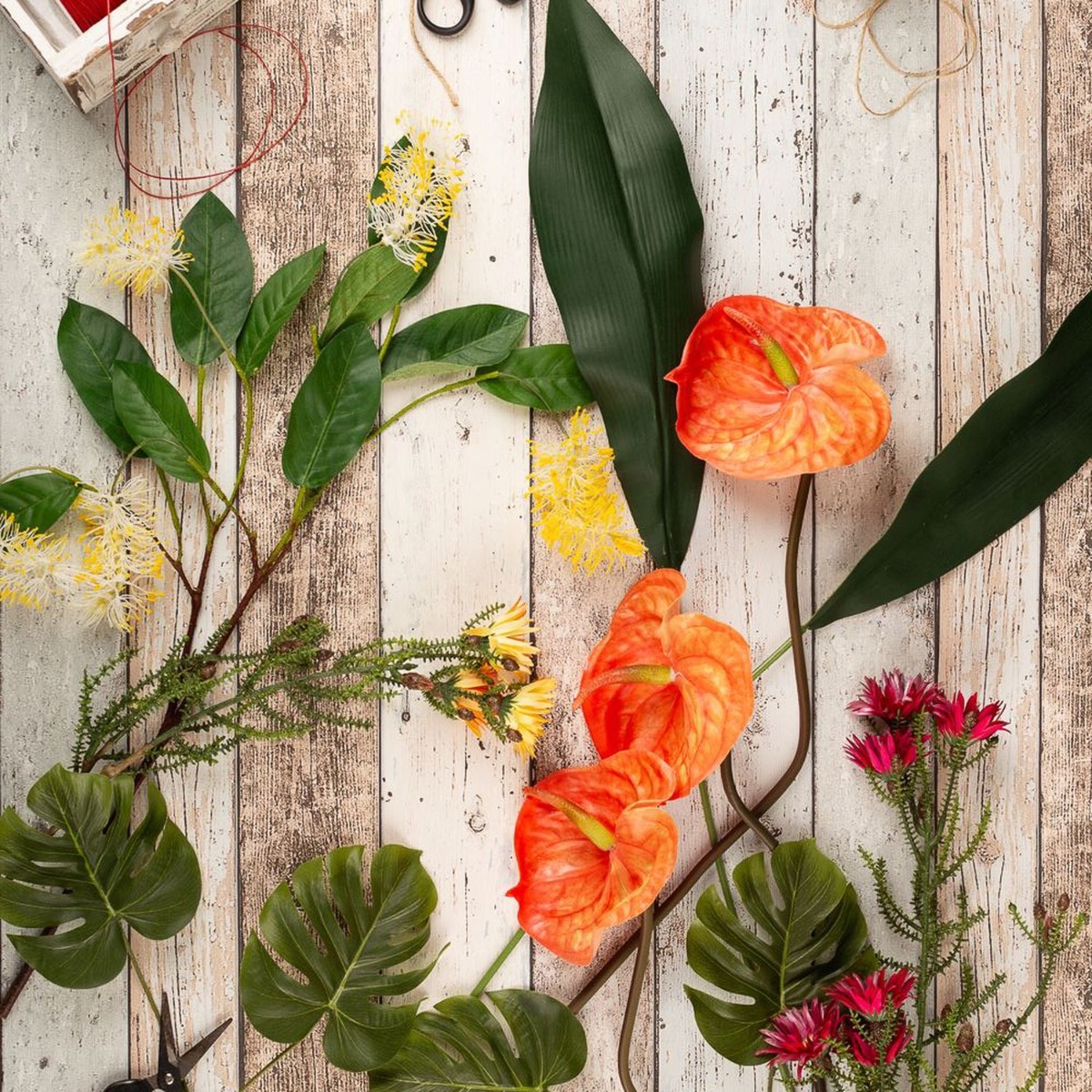 - Attachées avec une ficelle en sisal, les fleurs et les branches peuvent être raccourcies individuellement ou utilisées séparément pour des projets créatifs après avoir retiré la ficelle